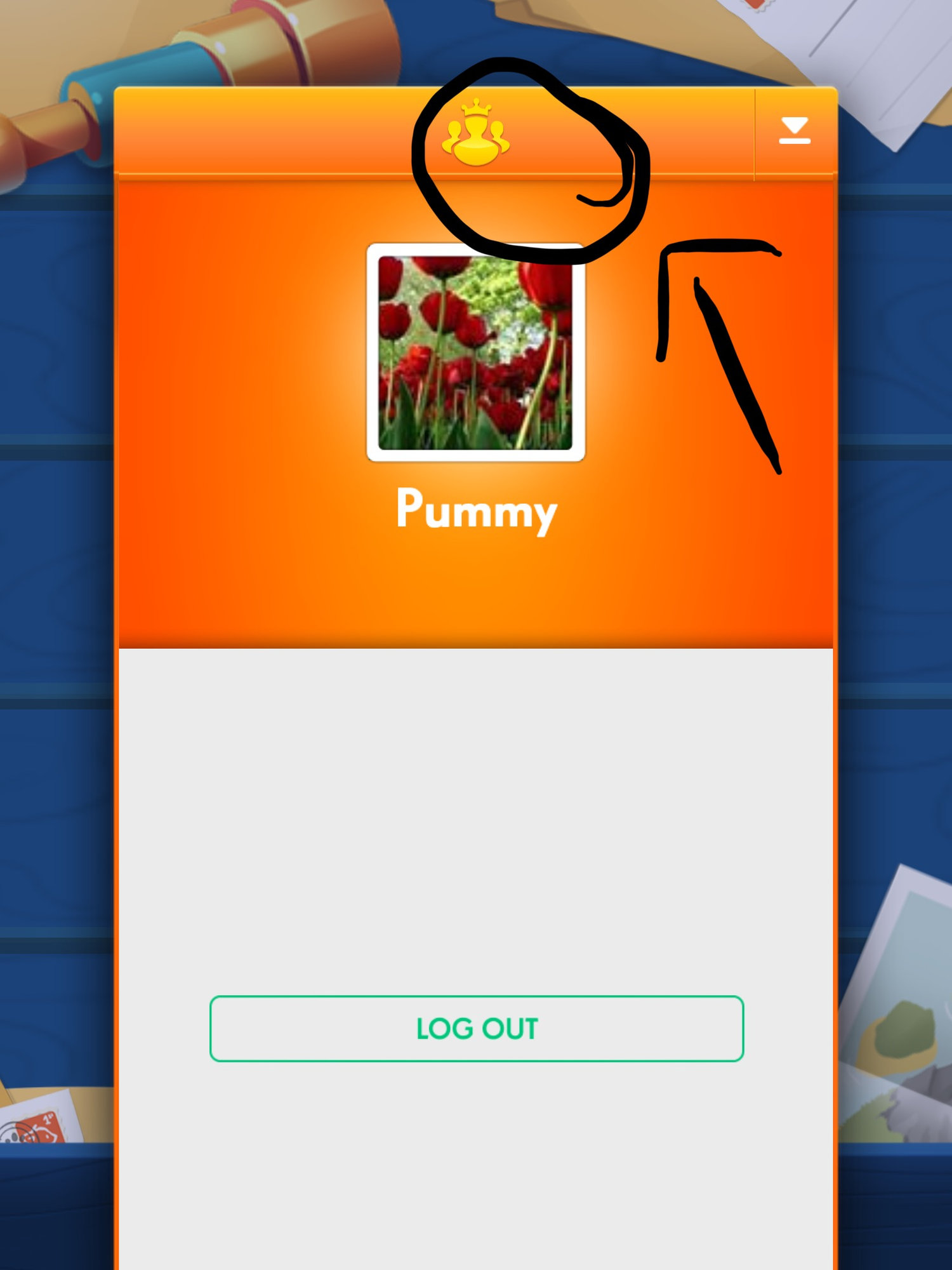 —-> Tap on the Gear / cog-wheel icon in the game —-> Click on “My Profile” —-> you should see this below screen —-> Tap on the King Emblem to get your Pet Puzzle game ID number