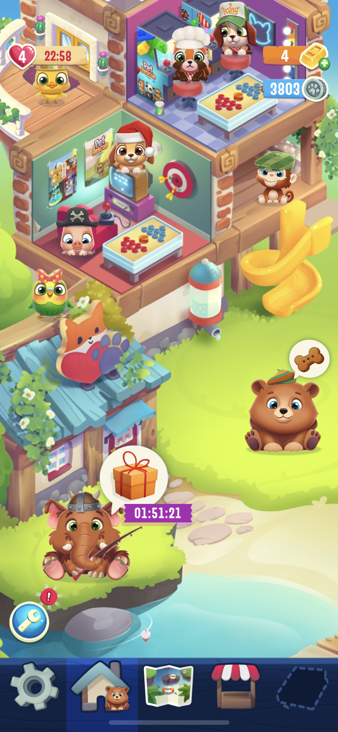 0 · Helpful Woah! Sweet Love HahaWelcome to the community also @ericacoelhog - You said you don't have the map at all? I can see the one screeshot is of your home, is the other screenshot what you get when you click on the map? It looks like one screenshot is of the stand with the red and white striped awning - which is where you can buy boosters and gold bars and the screen shot right next to it looks like your profile "the Wheel". You can see how each one of the icons is slightly highlighted. I don't see the 'map' icon highlighted.