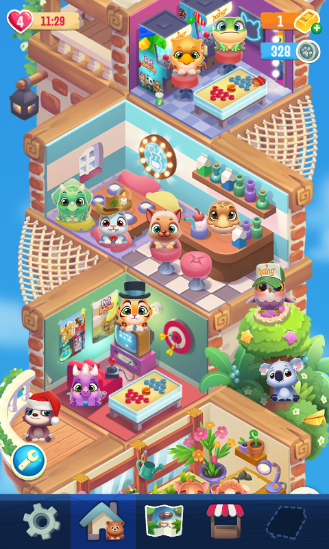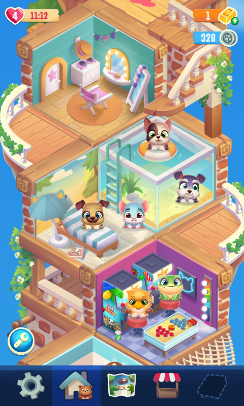 As you get more Pets they are added to the top of your house and new rooms become available as you get them.