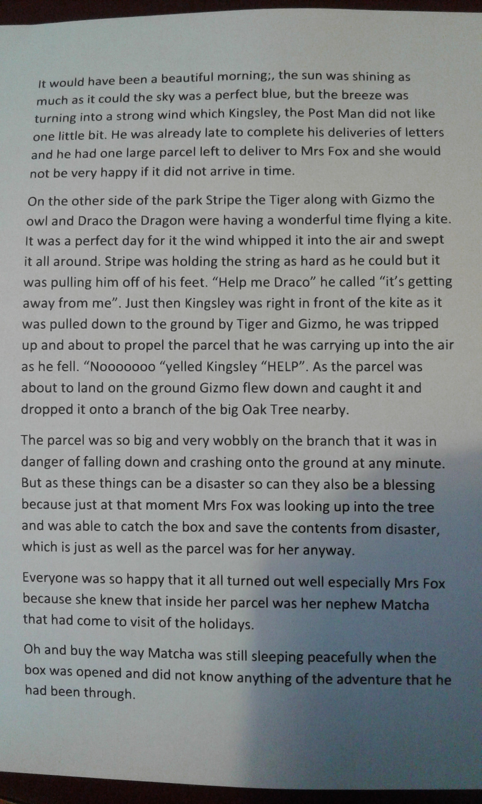 "OH NO" Fern said - "where can it be"? Then she looked up in the sky and there it was floating in the sky because the anchor had become detached and it was floating away. Fern heard a rustling in the bushes behind her and saw Kinglsey lurking there. He said "I'm sorry Fern. I was hungry and thought I would see if the rope tastes good."