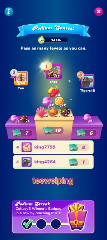 Does it mean I can't participate in this contest? I don't play new levels every day and don't check my podium. I saw your thread, opened my podium but few days have already passed. There's still almost 4 days left. If I wait for the start after 4 days I don't have enough time to complete because your contest ends in between.