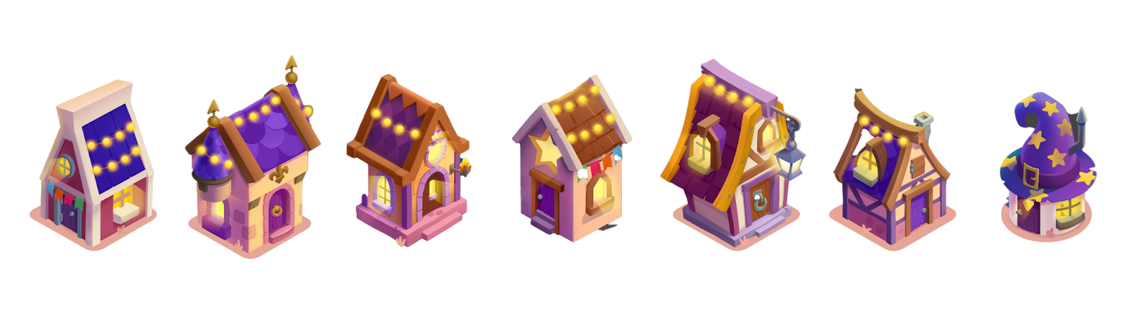 🏡 Carnival-themed buildings that blend naturally into this festive world