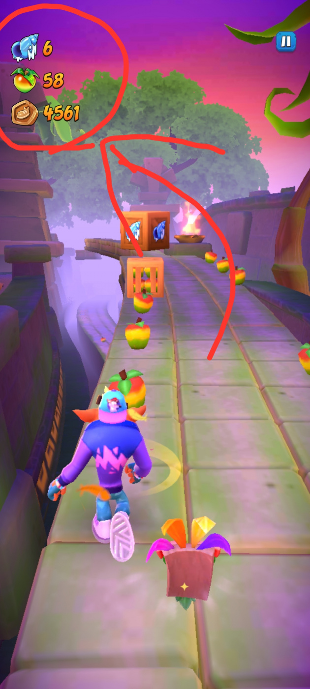 - Powerups for scoring more points, like 2x score, Crash's motorbike, Pura ride, Jetpack