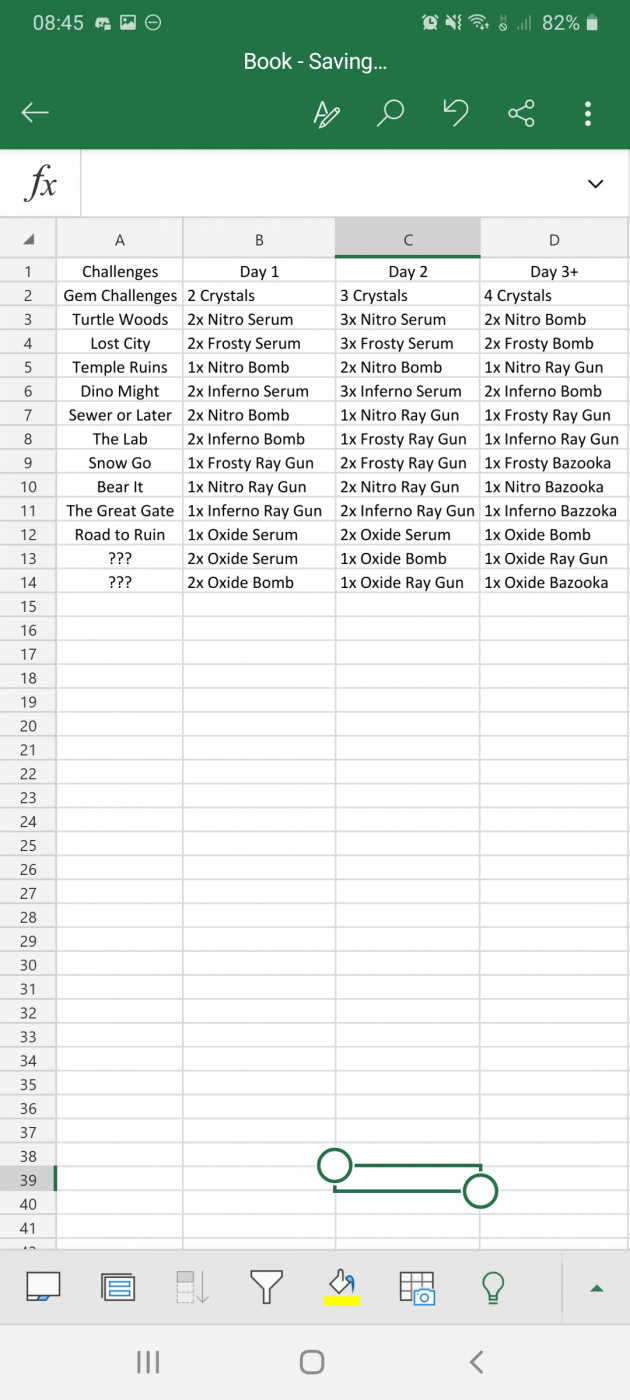 So on day 1, Temple Ruins Alternative challenge would start giving exactly one Nitro Bomb (because weapons are way more useful than resources).