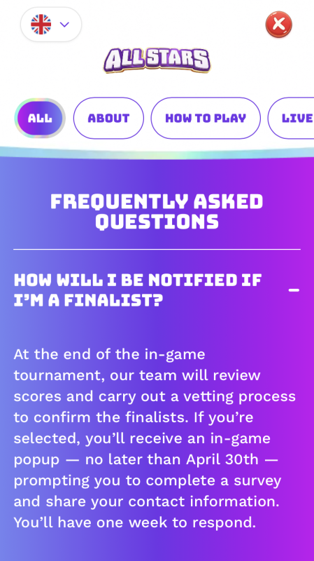 Hi, can you please clarify what does that mean by “ our team will review the scores “. I would like to know which score? Will there be only 10 groups to play for the final in the leaderboards and you will choose the person in the 1st position or will there be more than 10 leaderboards and you will choose the 10 finalist who have more blue candies score