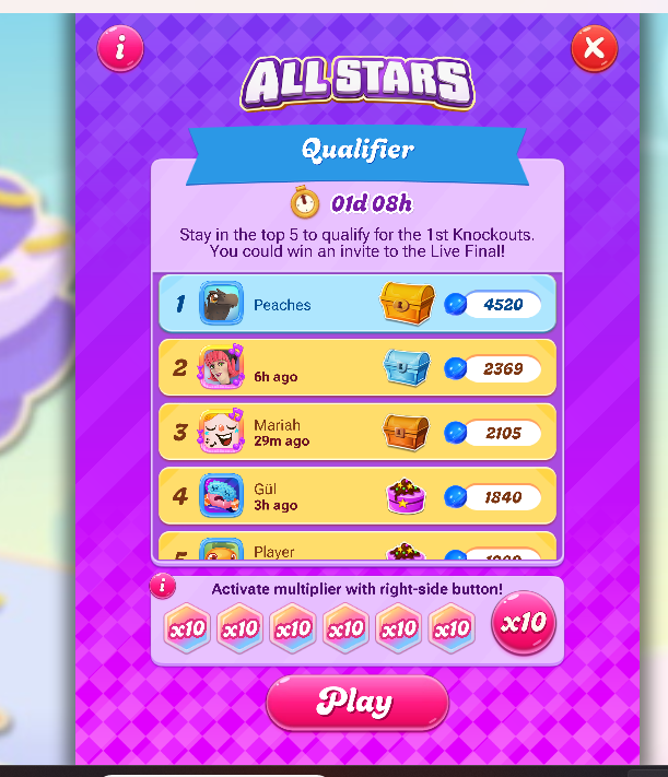 Welcome back, you have been missed. Although I don't expect to get very far in All Stars, my favorite booster is the UFO. It really can make a difference towards the end of a level. Here is my progress so far.