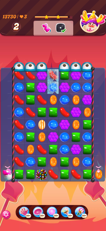 Wow! This time is the right dragon, colour bomb/ wrapped candy combo send it to the bottom. But I am VERY LUCKY because I can use a hand switch to send it to its nest now by the yellow candy on its head ππ€£π€£π€£π€£π€£π€£