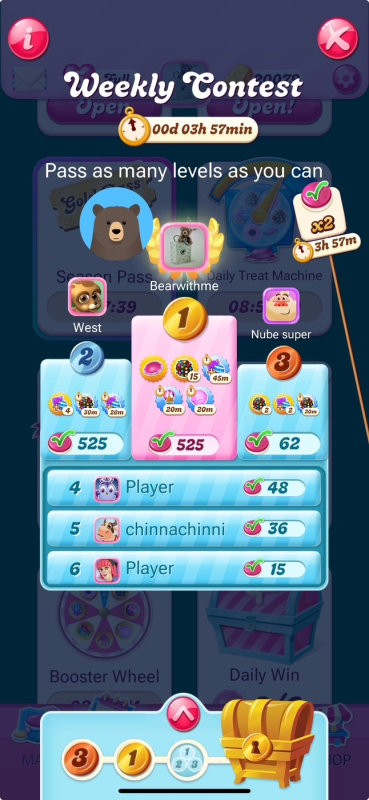 If you do not have the Weekly Race in your game (for example those players at or near the top of the map) all you need to do is take a screenshot of your map showing your avatar and current level and 6 days later take another screenshot of your map, showing how many levels you have completed in a week.