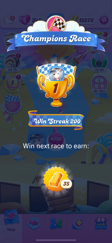 I can finally claim that 200 episode race win streak badge!