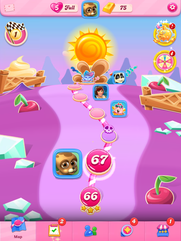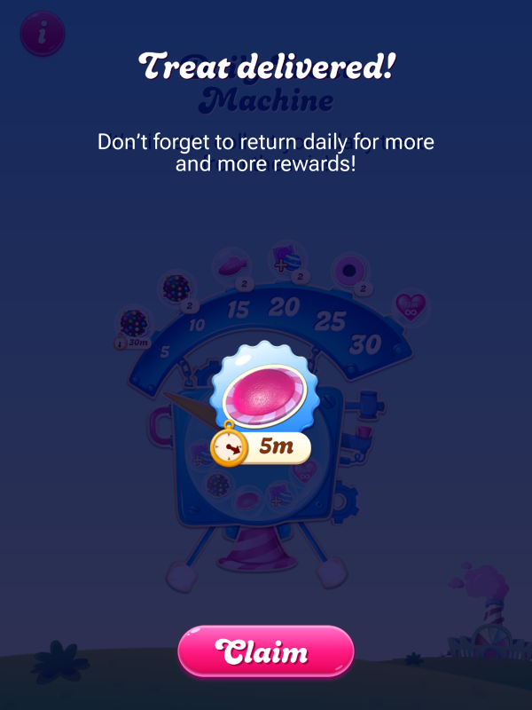 A new player, started playing a few hours ago. I've just started the second episode race, level 65. The daily treat machine pops up: