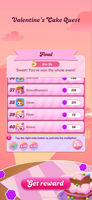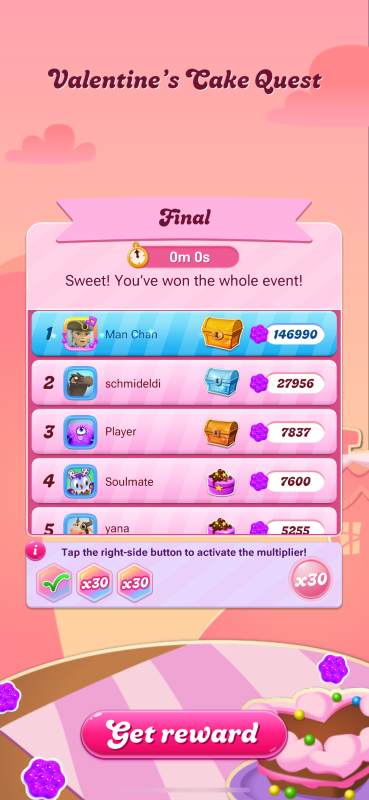My leaderboard had only 40 players in total. The other 30 players could not enter into my leaderboard before the cut-off time😂🤣🤣🤣🤣🤣