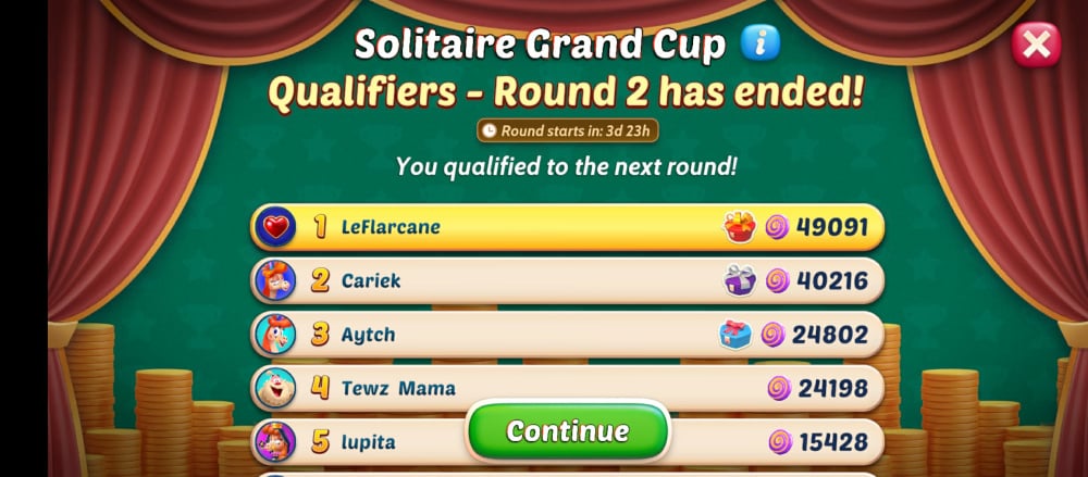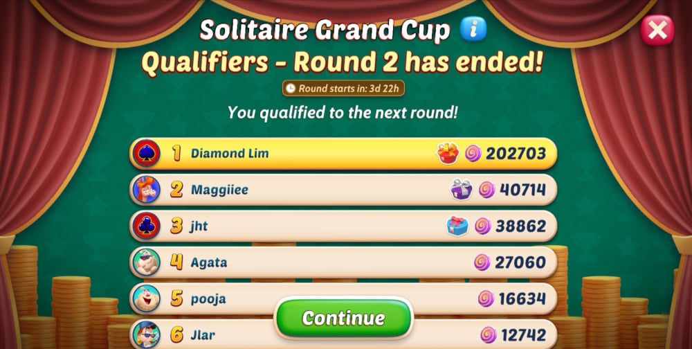 Qualifiers - Round 2 is really also so simple to win the sweet rewards and qualify for the next round [Knock Outs - Round 1] in the Spring Solitaire Grand Cup Tournament Event! ✌️😄