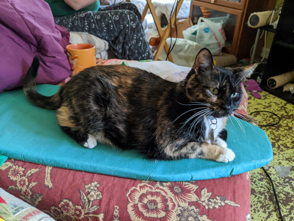 1 · Helpful Woah! Sweet 1Love HahaI have 5 cats and my roommate has a dog. Can I enter them all?! This ironing board surfer is Torti! She will be 6 in July! She loves to hang out in my garage and wrestle with her two little brothers! She also loves to sit on my shoulders and style my hair!