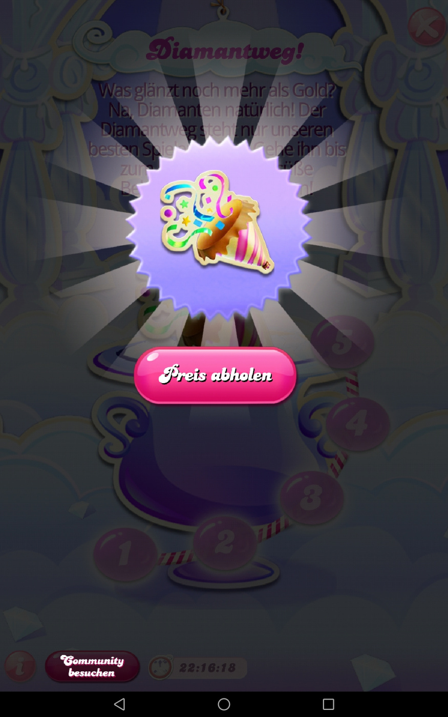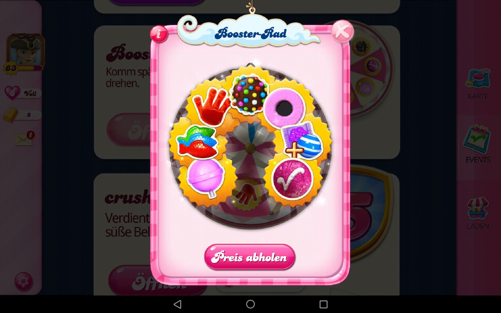 Es gibt Farbbonbons und Farbbomben sowie 4 Lollis und 3 gestreifte Lollis zum sammeln und zwar für jedes Mitglied im Team. Aber nur, wenn diese auch über mobile App spielen und die neueste Version haben.