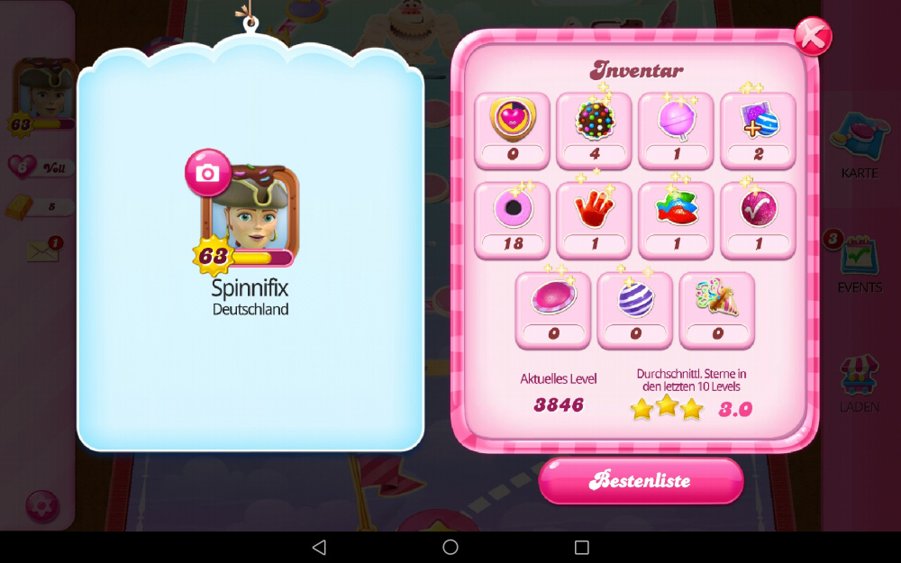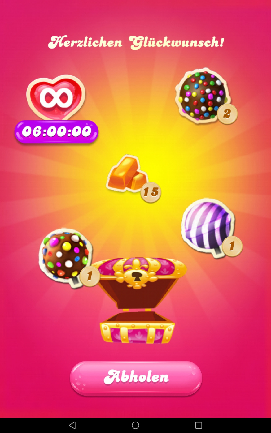 Im Urlaub hatte ich mal etwas Zeit für ein Spiel und habe super Farm Heros gespielt. Somit waren es bestimmt fasst 14 Tage das ich kein Soda gespielt habe. Ob ich heute noch dazu komme ist fraglich. Habe noch genug zutun und dann noch zur Rückenschule.