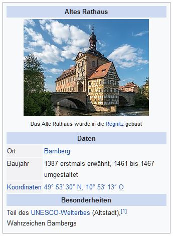 Ihr könnt ja bei Google mal eingeben, altes Rathaus Bamberg. das Bild ist in vielen Kalendern in Bayern.