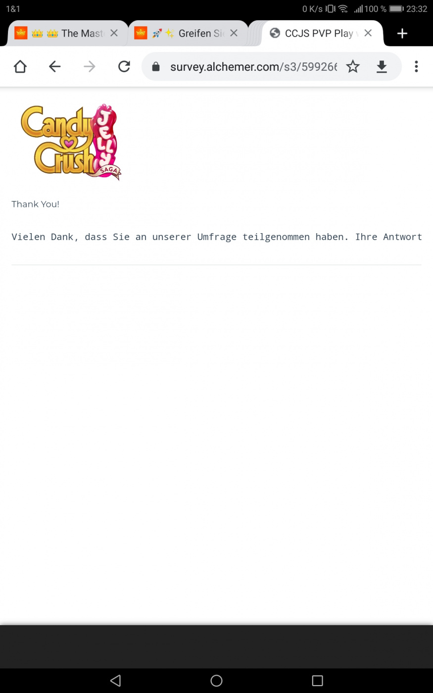 Nach Ende der Umfrage kam ein "Feedback", was nicht wirklich lesbar war. Den Screen schicke ich vom Tablet.