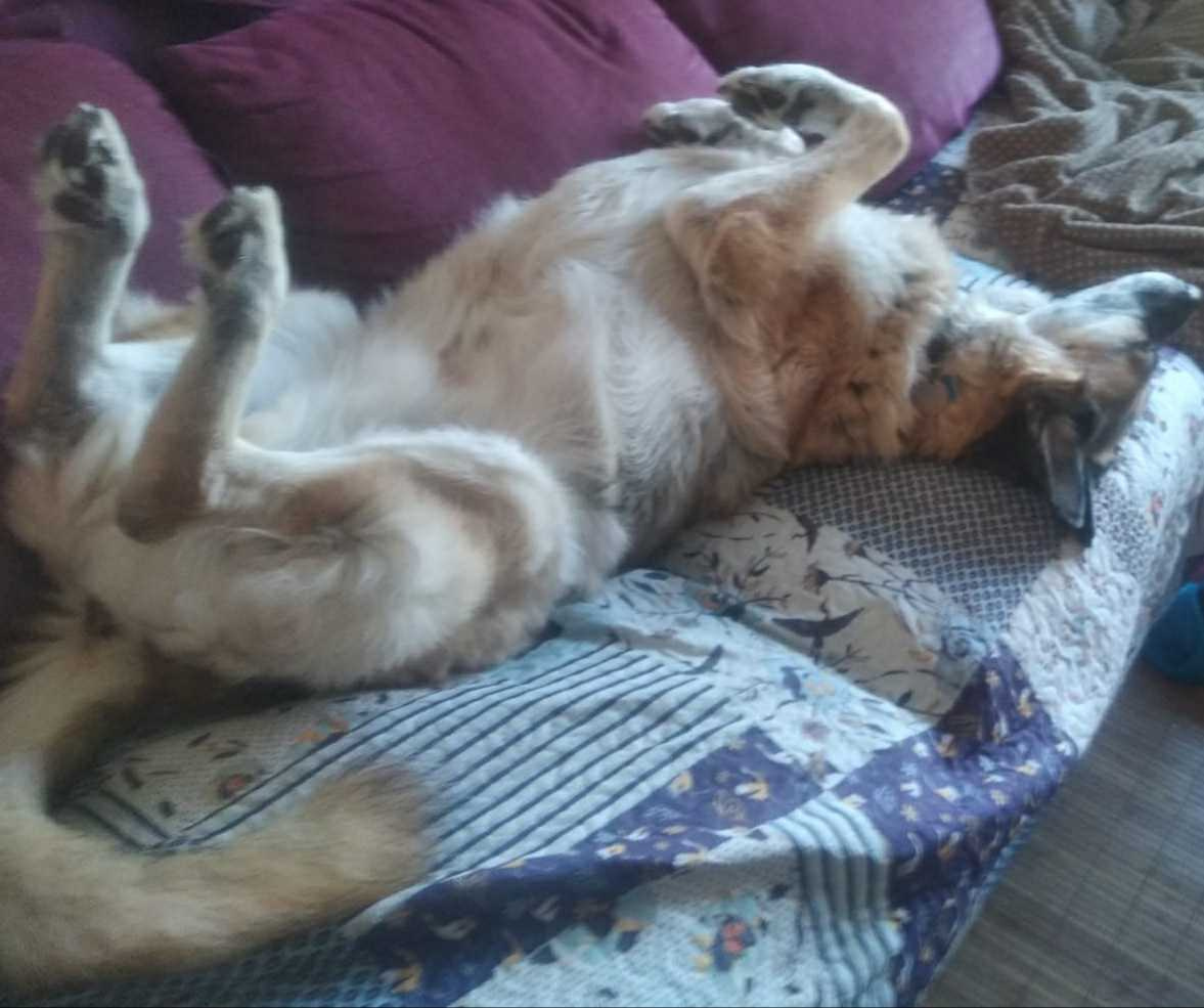 Ich finde, dies ist auch ziemlich verrückt; so hat unser Hund immer geschlafen. 🤪