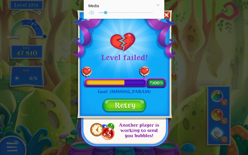 2 · 1Helpful Woah! 1Sweet Love HahaHello everyone 😁 I am back for help again,since this is the only place I can seem to ask questions about a problem I'm having in a game,I have asked before and get lost to where my questions might have an answer here I go again. I am having a problem in Bubble Witch 2 I go in and play my 5 go get 5 more shows I have lots of lives left but if I go to get more I don't have any or I only have 2 or 3. I did notice this error on my tablet screen and hoping this is my problem and hope someone can help me fix it.I have attached a screen shot.The error is in the [HERE]...PLEASE help😭
