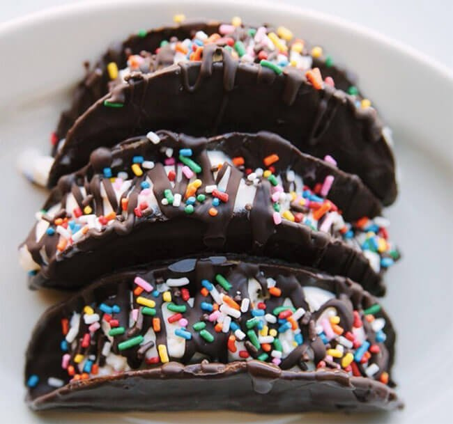 Para terminar, encima de todo lo anterior se encuentra un pastelillo de chocolate ¡con una fresa bañada en más chocolate! Y para decorar, una paleta de caramelo con sabor a Tutti Frutti (tropical) 🏖️