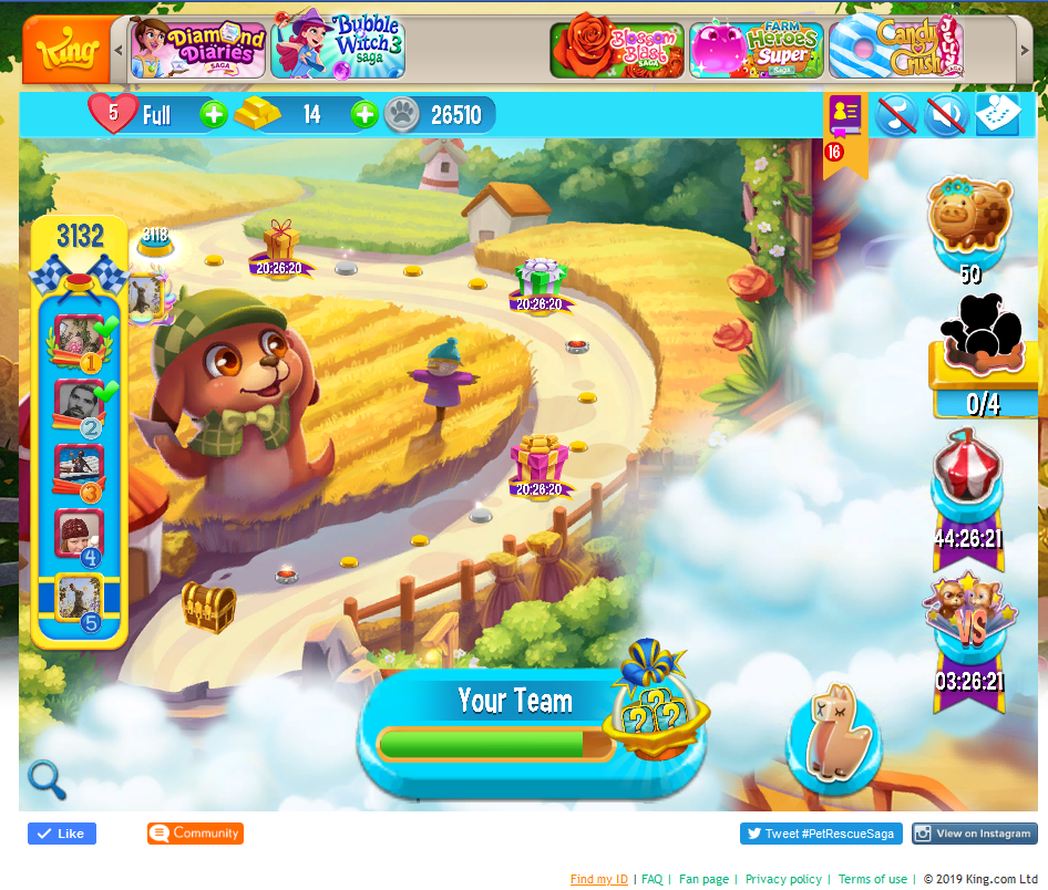 I have been playing Pet Rescue for a long time and although my progress has been slow I reached level 3132 2 weeks ago. I play on both PC and Android phone and have never had any issues in the past. When I moved onto this new episode I have a treasure chest, sceen shot below, if I click the chest I get the message " What's that up ahead? ". A treasue chest ? Keep playing the episode to reach it". Fine but the chest does not dissappear and I can't move on. I did wonder if this was an update issue and have waited 2 weeks but it is still there.