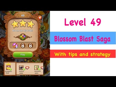 Try this walkthrough, with in-video tips for passing level 49. Some tips: First get rid of the flower pots and molehills by ending links of flowers next to them... do not let the molehills spread. look for opportunities to make super blooms for big blasts. Try to link flowers into the big bud of the same colour to reduce its number quickly. Hope it helps!