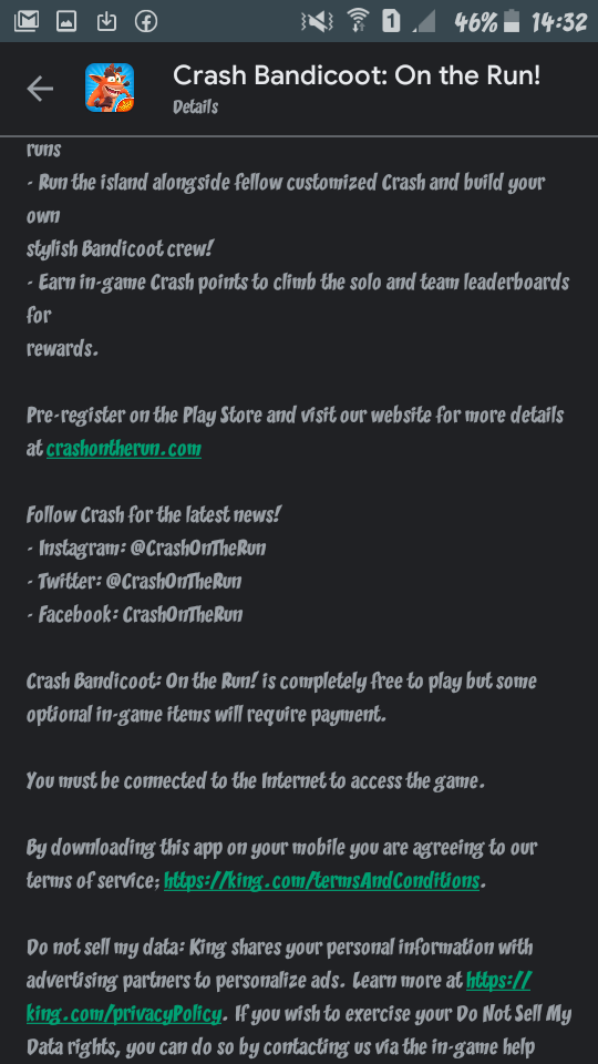 3666 🐺 Soon you will able to pre-register for Crash Bandicoot: On the Run! I see this already as the description of the game has changed today... and it maybe announced today with Crash Bandicoot 4: it's about time! I'm too excited! 😃