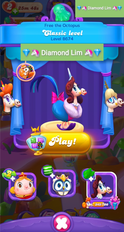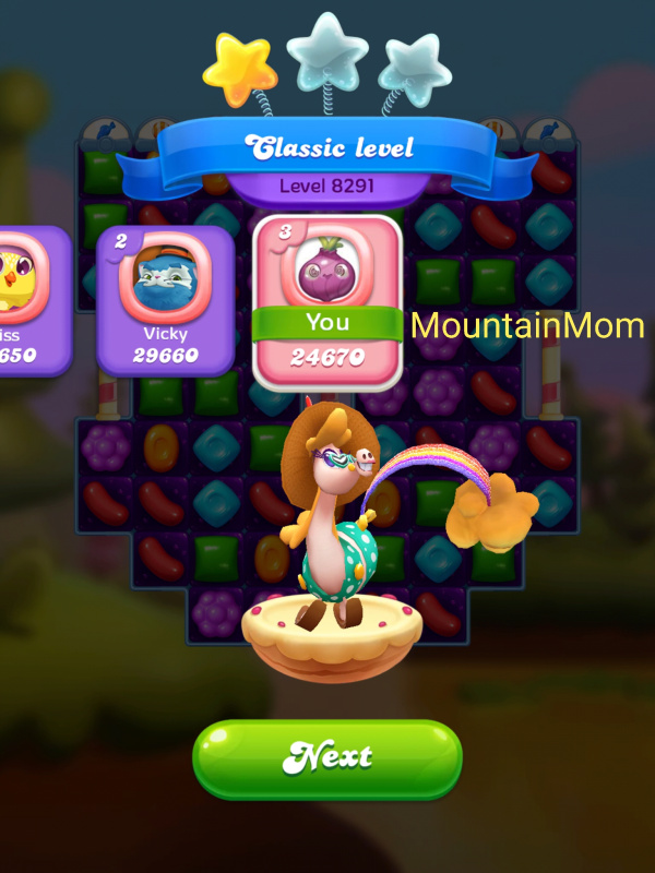 Then, post 2 screenshots per level for each of the 8 levels played with Misty: (1) when you start the level and select Misty in your favorite costume, an (2) after you win the level, showing your final score with Misty in your favorite costume.