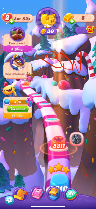 This time the challenge is very simple. You just need to play and win 5 new levels in your Candy Crush Friends Saga game.
