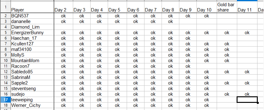 Players who make at least 10 valid entries on 10 consecutive days will receive a share of 180 gold bars.