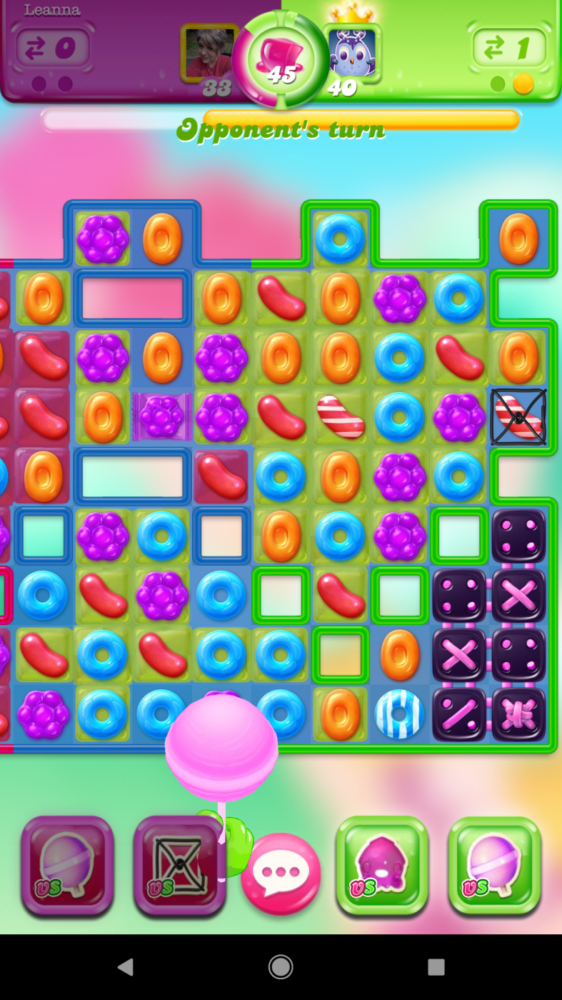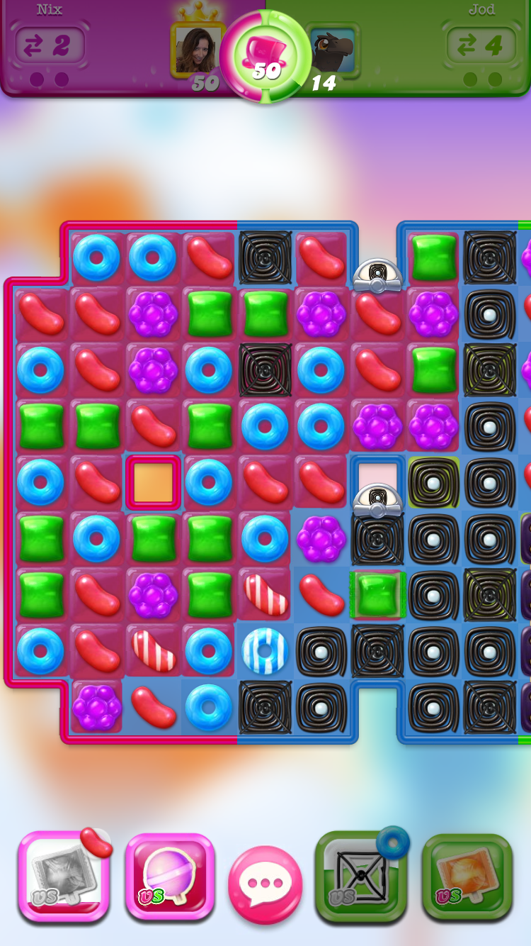 1 · 1Helpful Woah! Sweet Love HahaGRRRRRRR Happened again...I caged... No jelly's moved on opponents side...their turn and some how they are set up for a striped purple jelly 😐 I mean I'm smart enough to know what to cage and I sure wouldn't have caged what I did...All those purple jellies were not there..