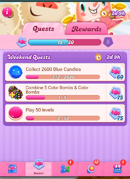 This week, I had finished 1 Episode, when this appeared for the weekend quests. Please tell me how I am to complete 50 levels when I have only 45 left ???????