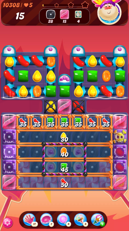 Hello @mai23 and welcome to the community. It sounds like you have a faulty version of this level. My level 10,308 has red and yellow candies and I do not see any purple or blue. Please could you post a screenshot of your opening board for this level?