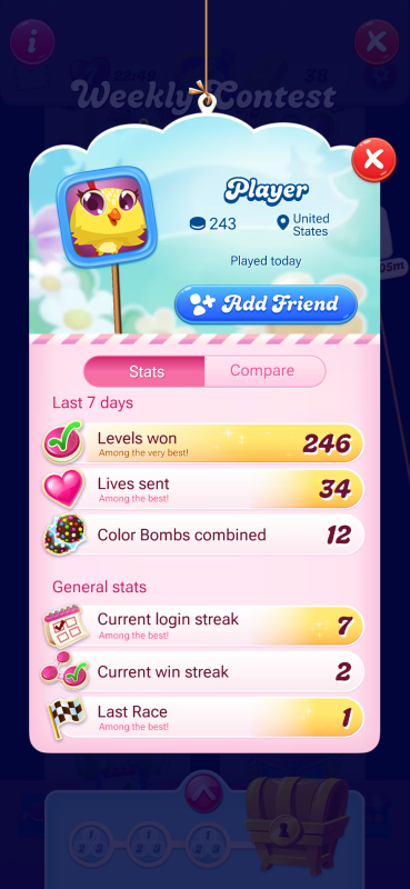 @Munster This is my weekly contest. I agree with you. Look at this players wins and weekly stats. How does he have 246 wins but only on level 243. 😞