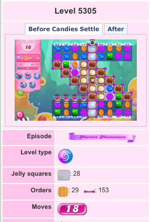 Second time in a week I have fewer moves than what any on line video shows. This time it's level 5305 and I only have 16 moves. Apparently the level had 25 moves then it was reduced to 18 and now 16(!?). This is getting ridiculous and I'm about to say see you later.