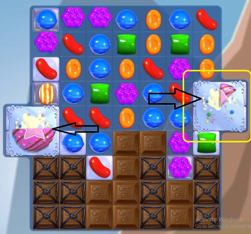 This level has medium difficulty. For this level try to play from top part of the board and make special candy. Or combine special candies with each other to break more blockers. Play near to cake to break them or use more special combos. After play with remaining jelly candy to break them all to reach the target.