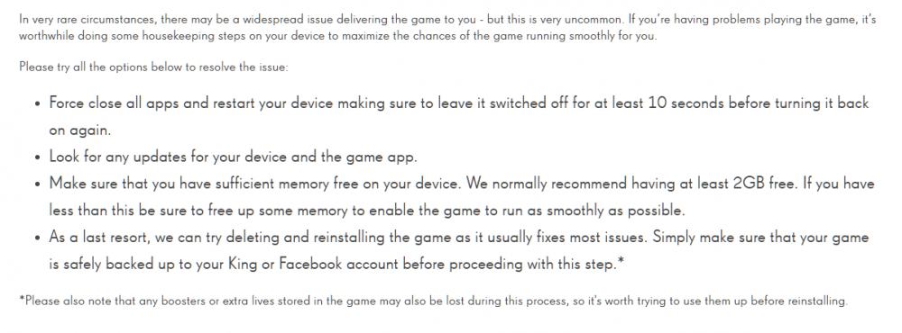 Please also note that any boosters or extra lives stored in the game may also be lost during this process.