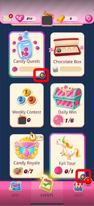 (Screenshot shows the events tab, where both the Candy Quests and the Fall Tour have the Season Mastery badge on them. It's a Golden Star with a rainbow border badge on the bottom right side of the event card)