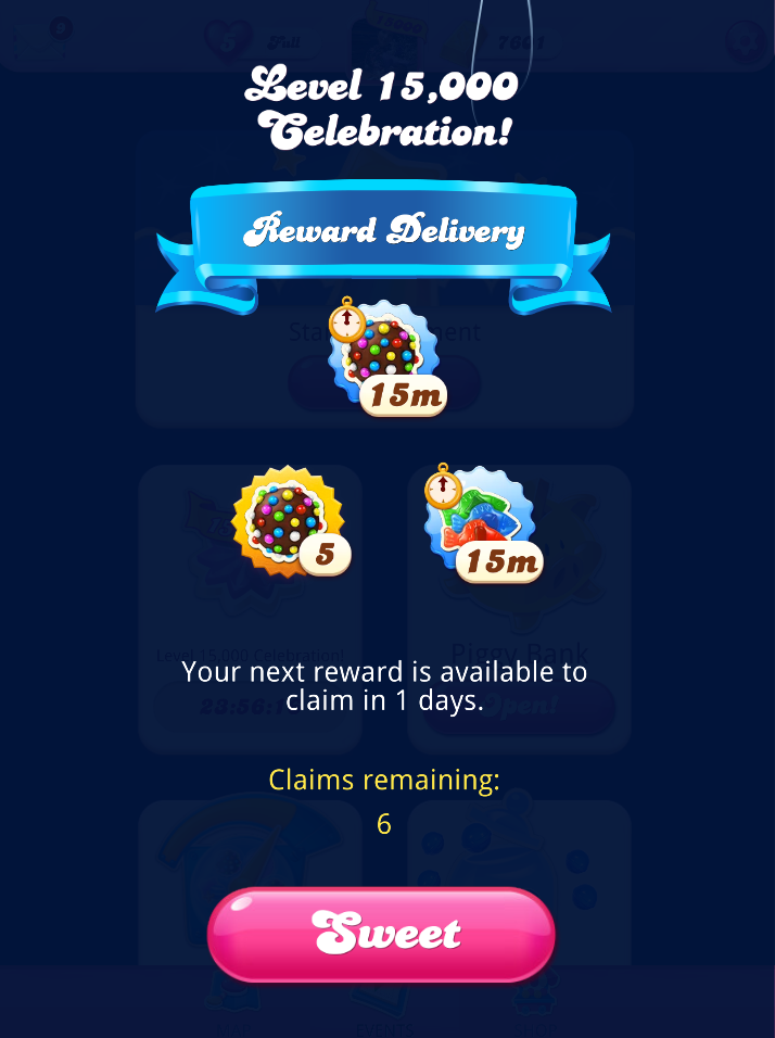 What is this Level 15000 Celebration Claim appearing in my Events - some rewards for those who have passed level 15000