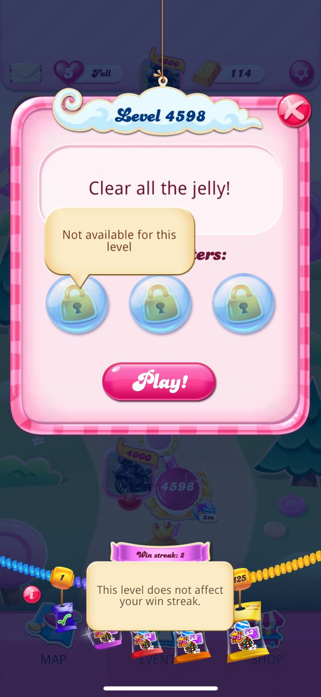 Since starting this episode, each level is stating that my boosters are not available for this level, and it’s not progressing my win streak nor giving me the boosters from it.