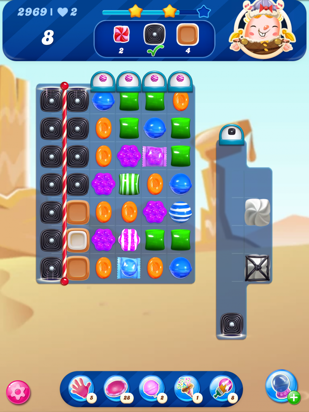 A lot of licorice has indeed dropped and filled the leftmost column, and some of it was removed by cascades. Now it's time to set off the combo.