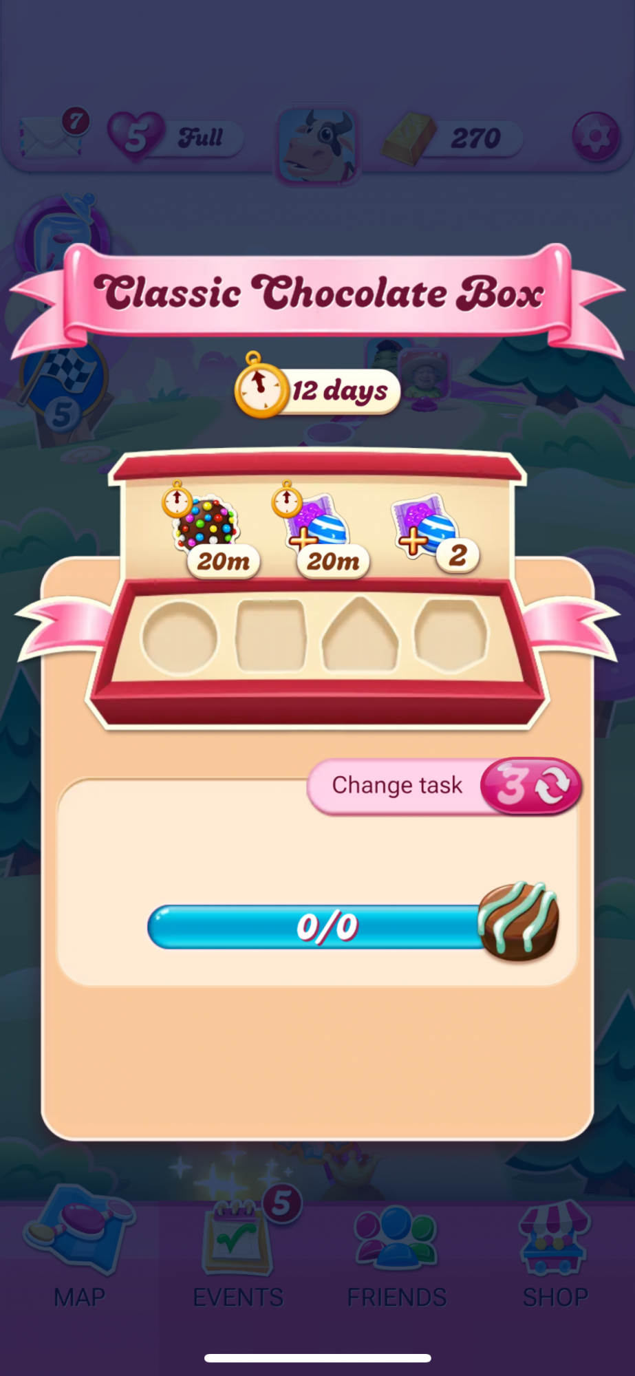 I am sorry to hear that you are experiencing issue with the Chocolate Box in your game! Did you try to clear the cache, etc.,? If not, can you please try and see if that resolves the issue? Also, do you have the latest version of the App?