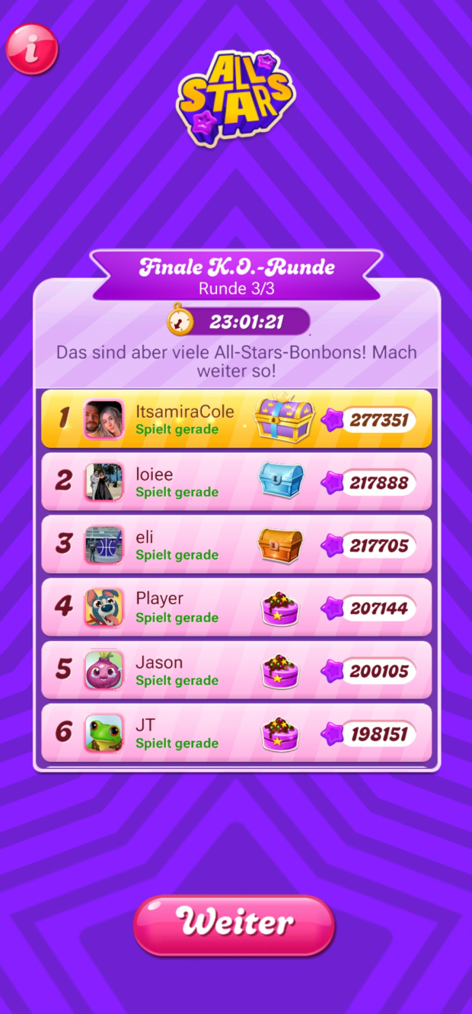 I'm on the same leader board. Itsamiracole started a new account in 2025, probably just for this contest. It's not necessarily skill but pay to win (using tons of party boosters and iflfos). I spent over 4K gold bars and was only able to gain up to 17th place and have stopped now as i started a level (8632) and instantly lost it when it loaded, so I lost my super bonus. Looks like she thing might have happened to itsamiracole as the winning streak was reset and now they area only ahead by 300k. 2nd place win streak is still big so they may be able to take 1st.