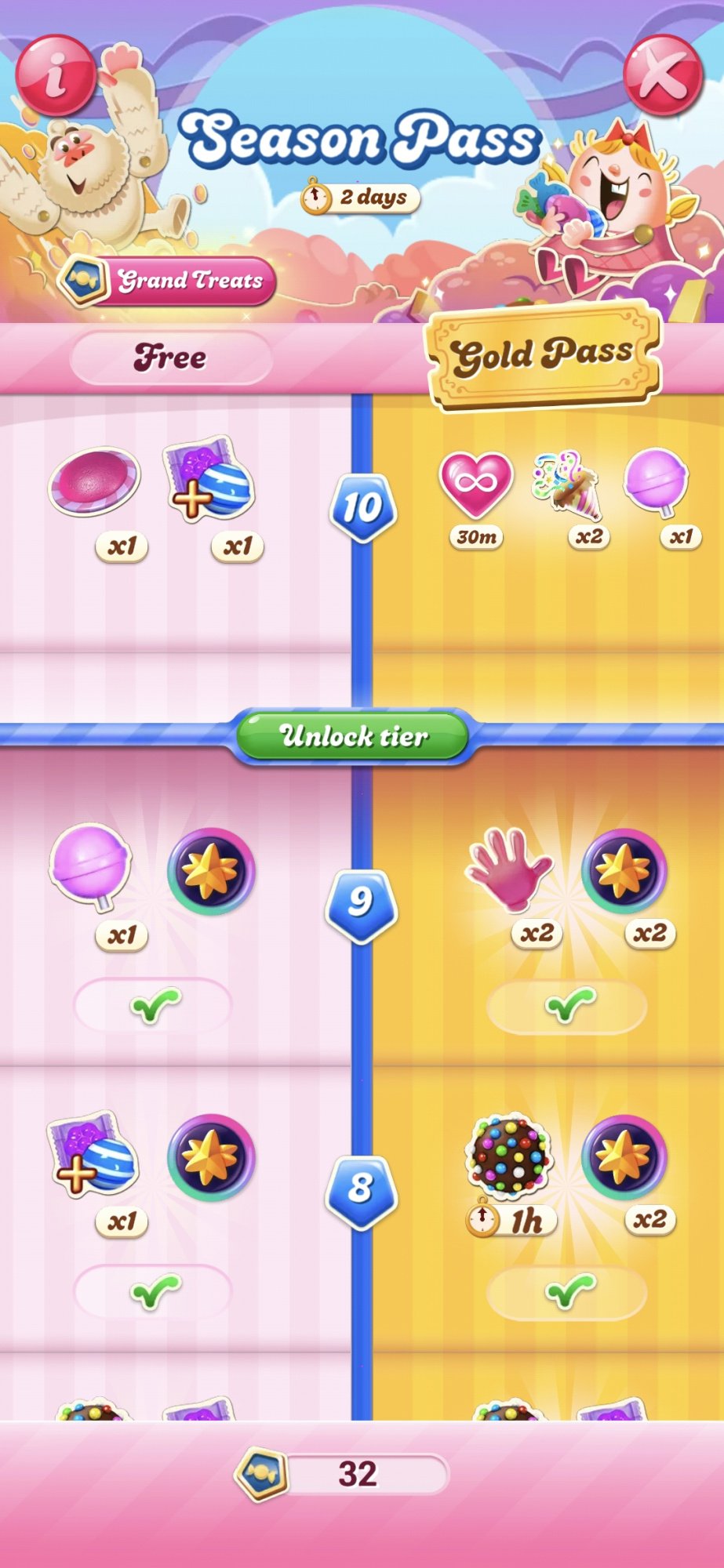 Hi @Anna_Kendall I note that you have not reached the top tier! You only get the rewards of tiers that you have unlocked in season pass, and that applies to both sides. But this is really easy to do! Season Pass works with old levels, so go back to any level you can easily pass and play it again and again until the last tier unlocks. Then you will get your party popper. It can definitely be done and costs you nothing. Depending on which level you are at it might take some scrolling back on the map, but usually the milestone levels are good, or scroll back to the beginning of the game for the easiest and quickest levels. You still have two days to do this.