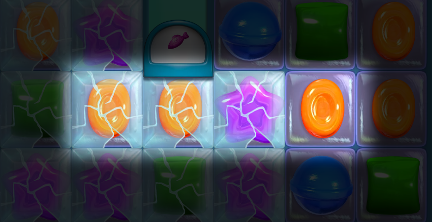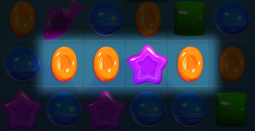 However, on levels that have ice, it works differently. In the screenshot below, you cannot move the purple candy because it is covered in ice and you cannot select it. But you CAN move the orange candy that is not covered in ice to the left to make the same match.