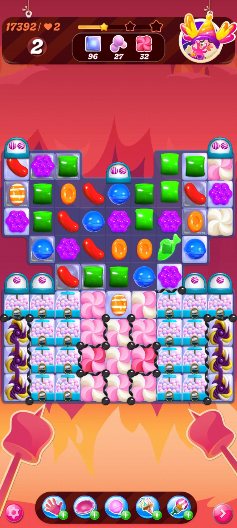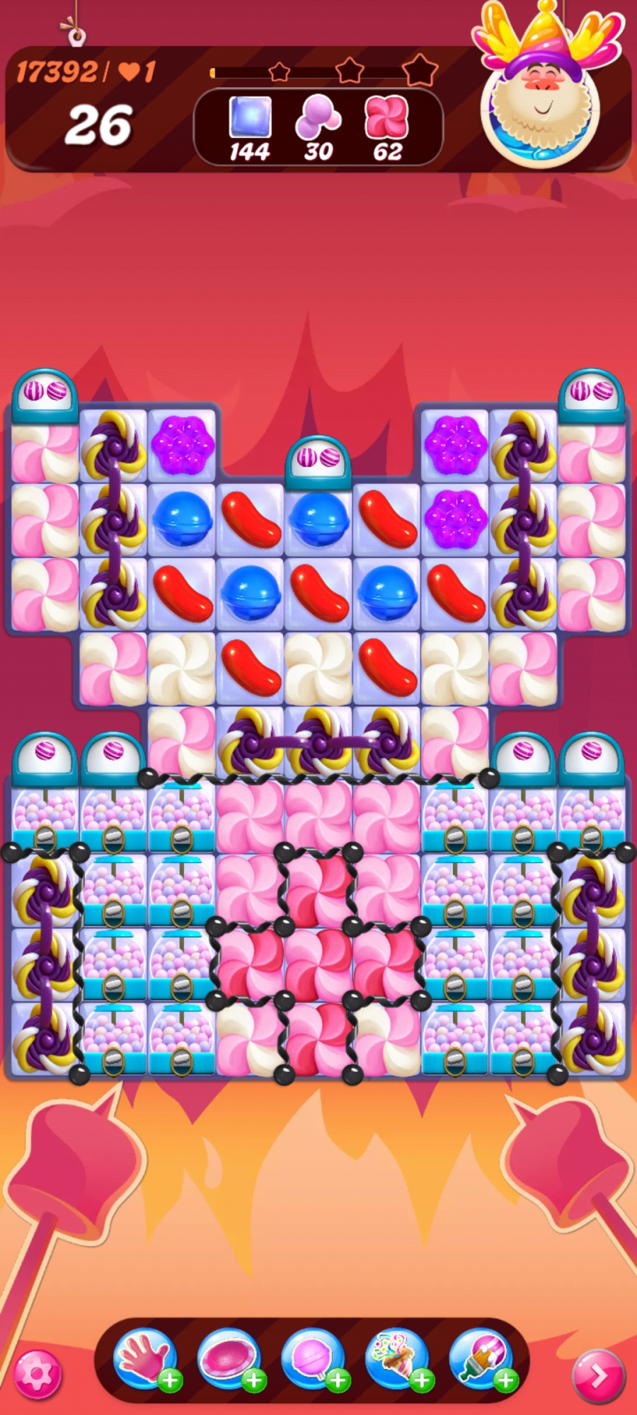Really easy level assuming you can do 3 double color bomb matches (and 2 of them might be enough). I'm pretty sure I completed it in less than the 26 moves. Of course, I probably spent like 15 each of free switches and lollipop hammers to do it (so yeah, it's totally ridiculous, and King should be ashamed for making such evil levels).