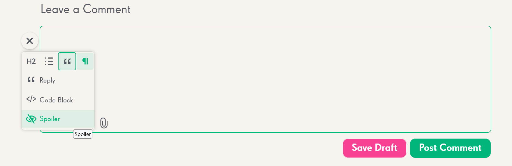 2. Click on the quotation mark and choose 'Spoiler' from the dropdown menu.