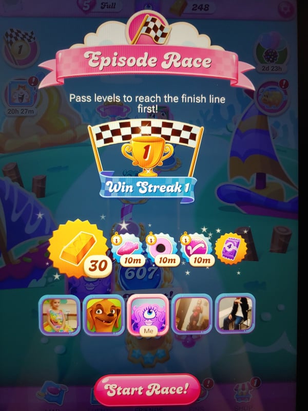 Why? Why does there need to be constant pop ups between levels? Why does there need to be an Episode Race Start pop up? Or an episode race continue pop up after every level? Or an Owl My pop up? Why? They are so annoying, I don't even want to play anymore. Infuriating. Why? Can't we get rid of them? Once is enough! I don't need to see a pop up to let me know that I started a new episode! This game is infuriating.