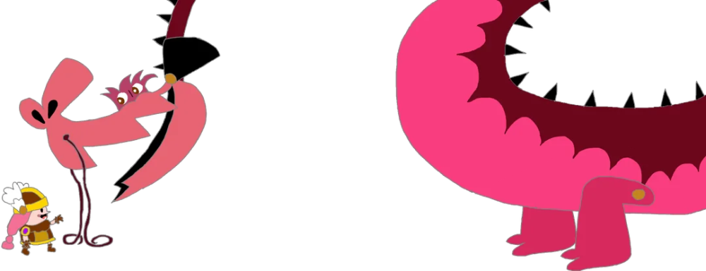 In light of the partial depictions of these 2 tall characters, here's some fan art that shows another way to depict Denize incompletely to reflect her tall height - show her head, neck and legs, while hiding the rest of her body. Here, she cranes and stretches her neck down to get a closer look at Hilda.