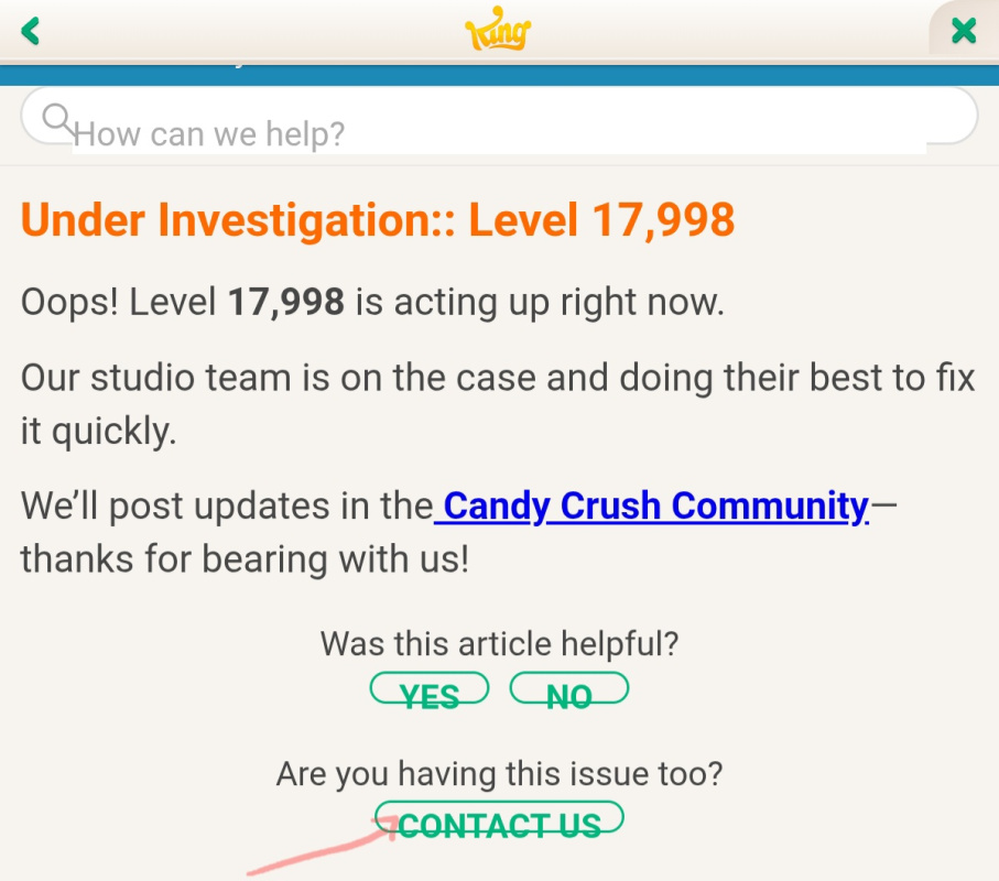 My candy crush game 17998 level in not connect issue in document iscussion pls soll the my game problem